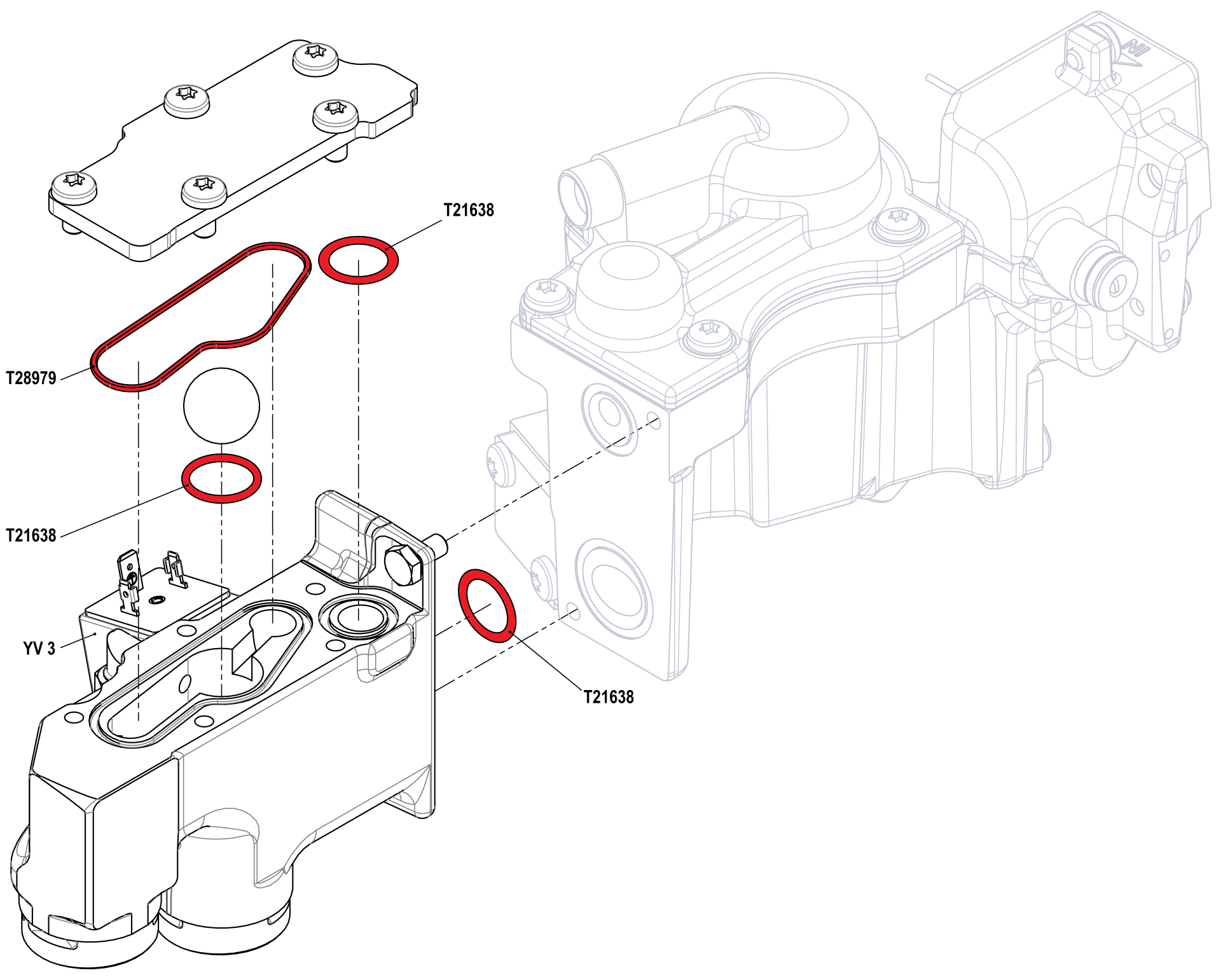 - Remove and remove the YV 3 solenoid valve cable connector.