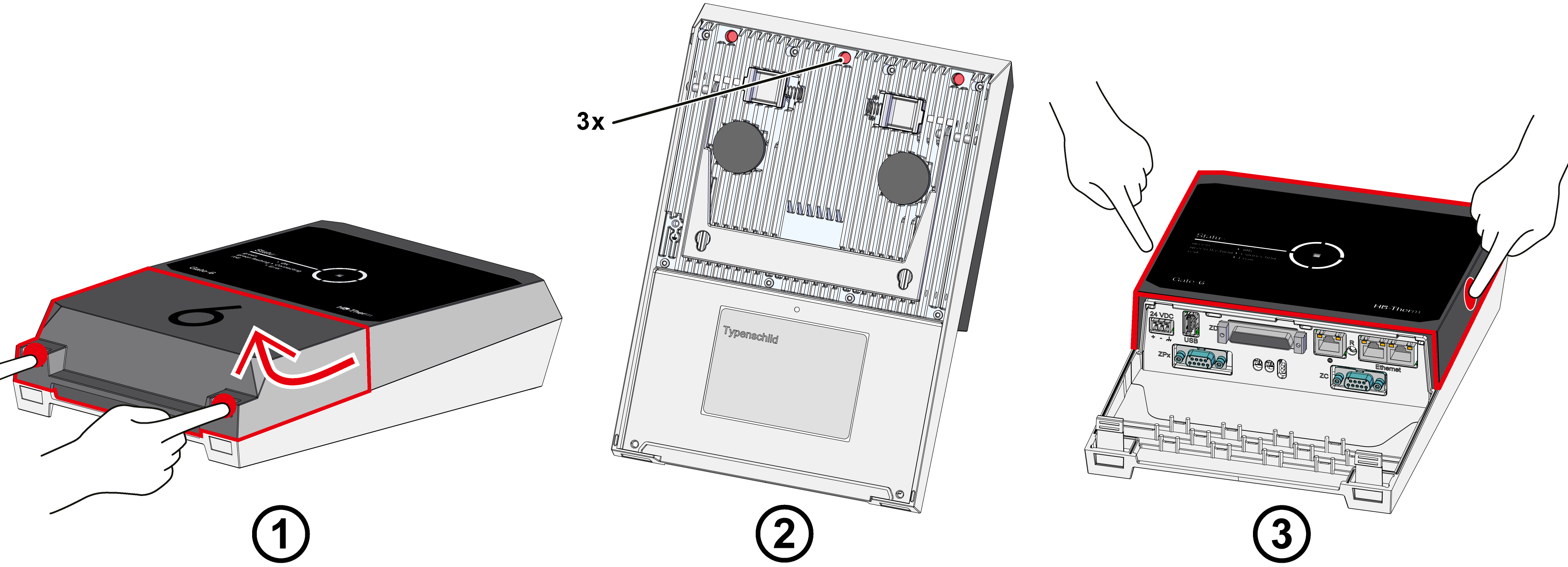 - Rimuovere le viti di fissaggio (3x) sul retro del Gate-6 (Fig. → 2)