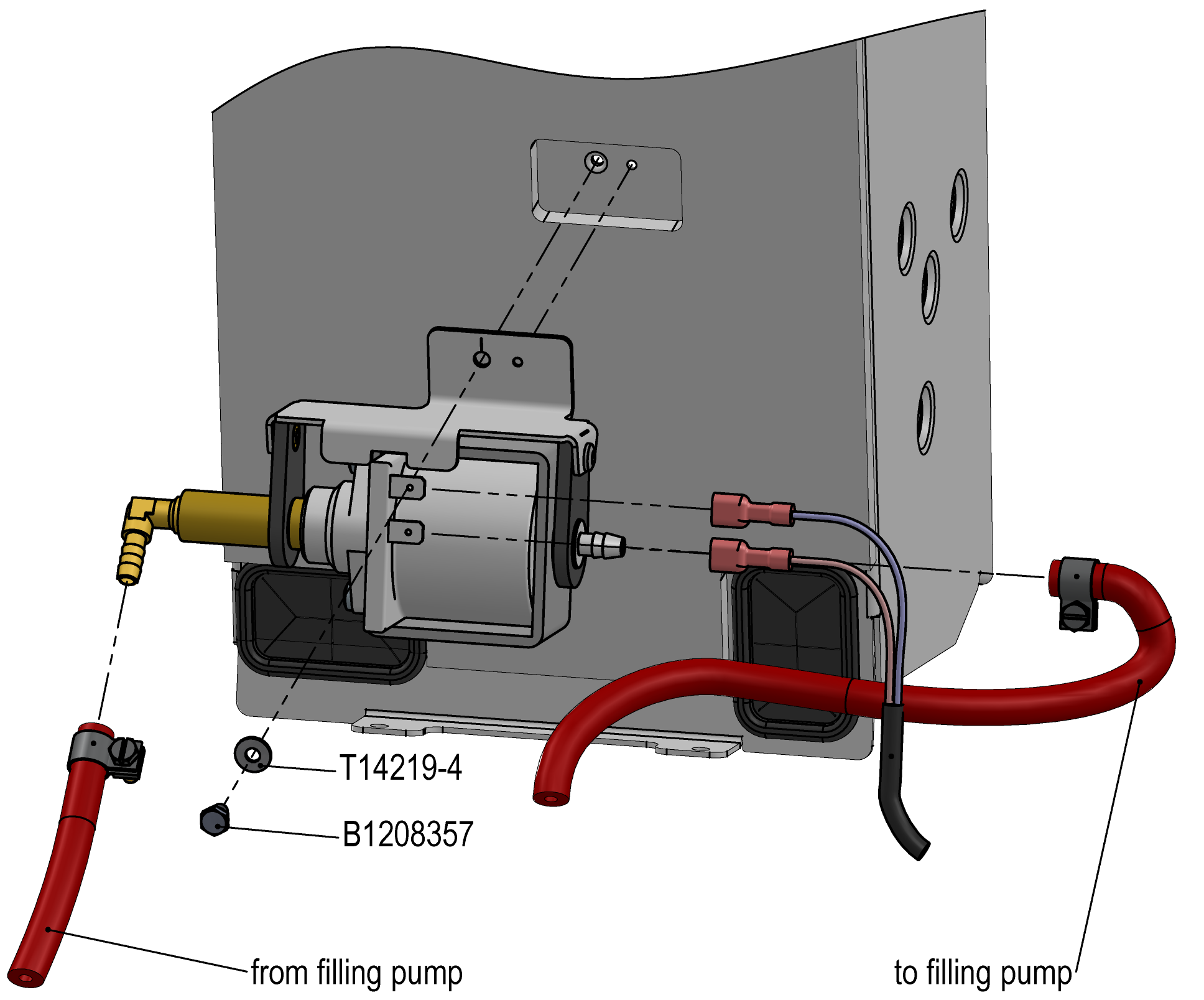 - Užpildymo siurblio siurblį su laikikliu pritvirtinkite į atitinkamą padėtį varžtu ir poveržle.