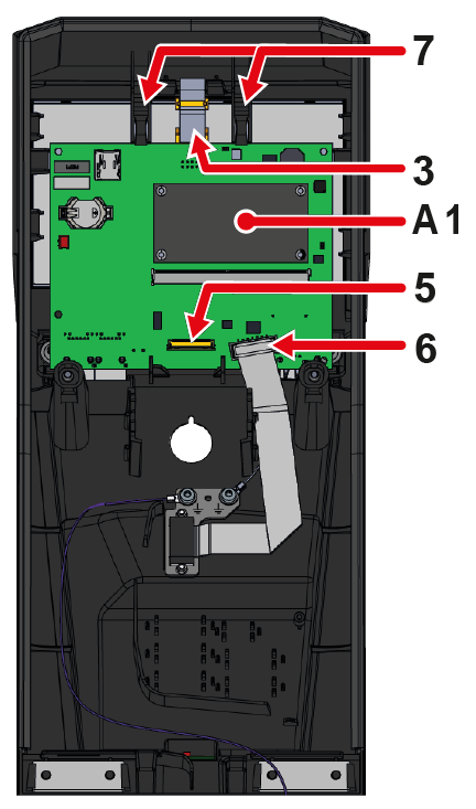 • 将接头 (③) 重新连接到 GIF-61 设备主板 (A_4)。