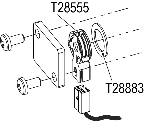 • 更换声音传感器 (T28555) 和密封件 (T28883)。