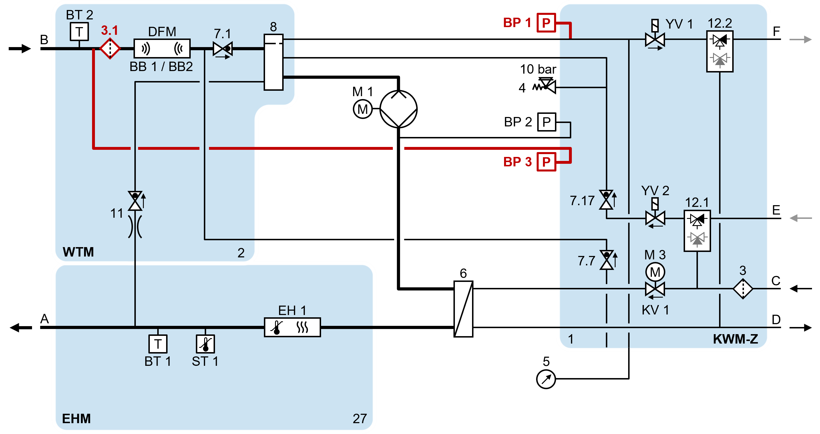 A visszatérő szűrő ellenőrzése (a hidraulikus diagram 3.1 komponensei) megelőző karbantartási funció. Csökkenti a nem kívánt berendezések leállását azáltal, hogy korai szakaszban észleli és jelzi a visszatérő szűrő eltömődését. Ez a funció növeli a készülék megbízhatóságát és hatékonyságát, és segít a kezelőnek megtervezni a karbantartásokat. BE eltömődött visszatérő szűrő csökkenti az átfolyási sebességet, és szükségtelenül magas energiaigényhez vezet.