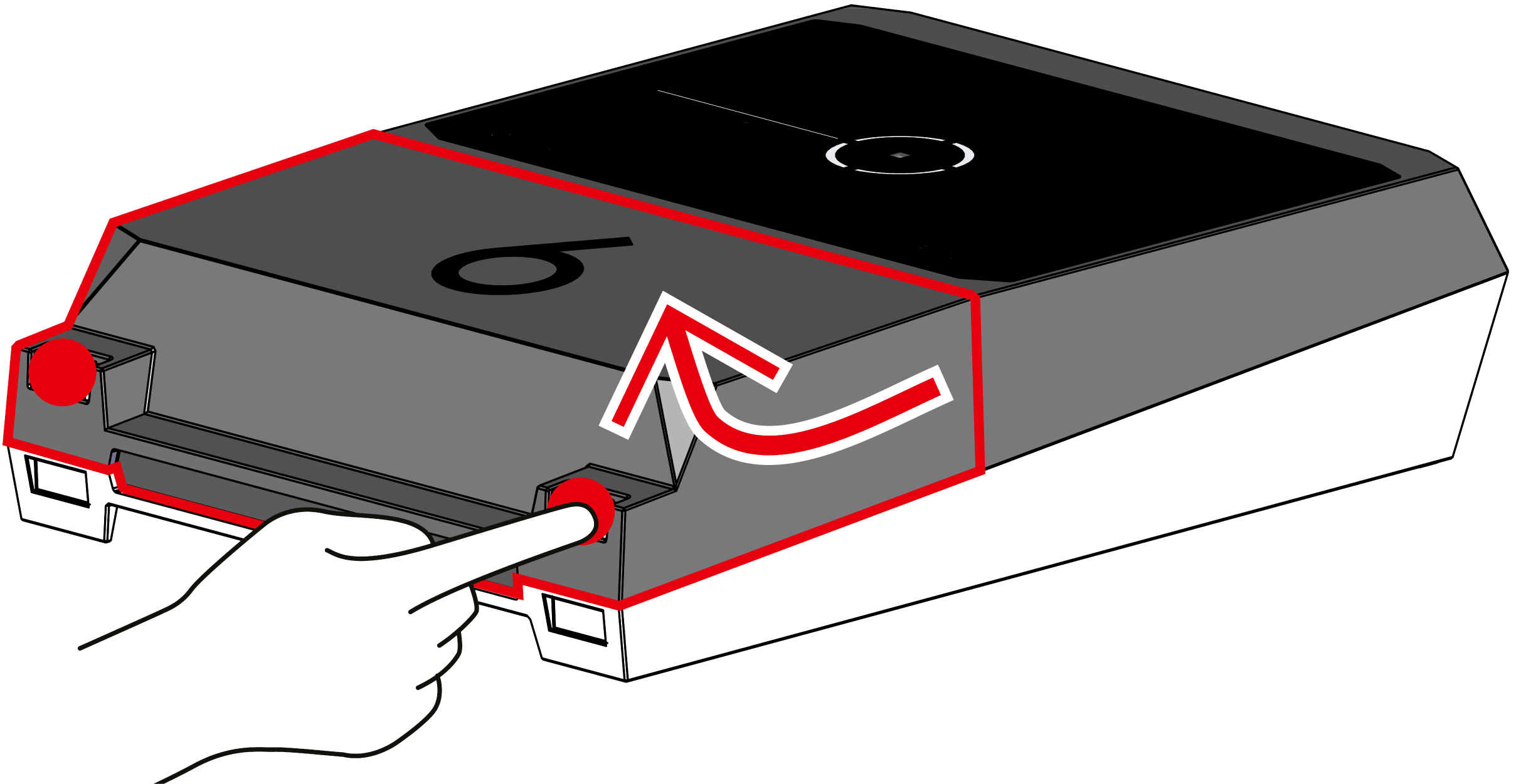 1. 고정 스트랩을 누른 상태에서커버를 위로 들어 올립니다.