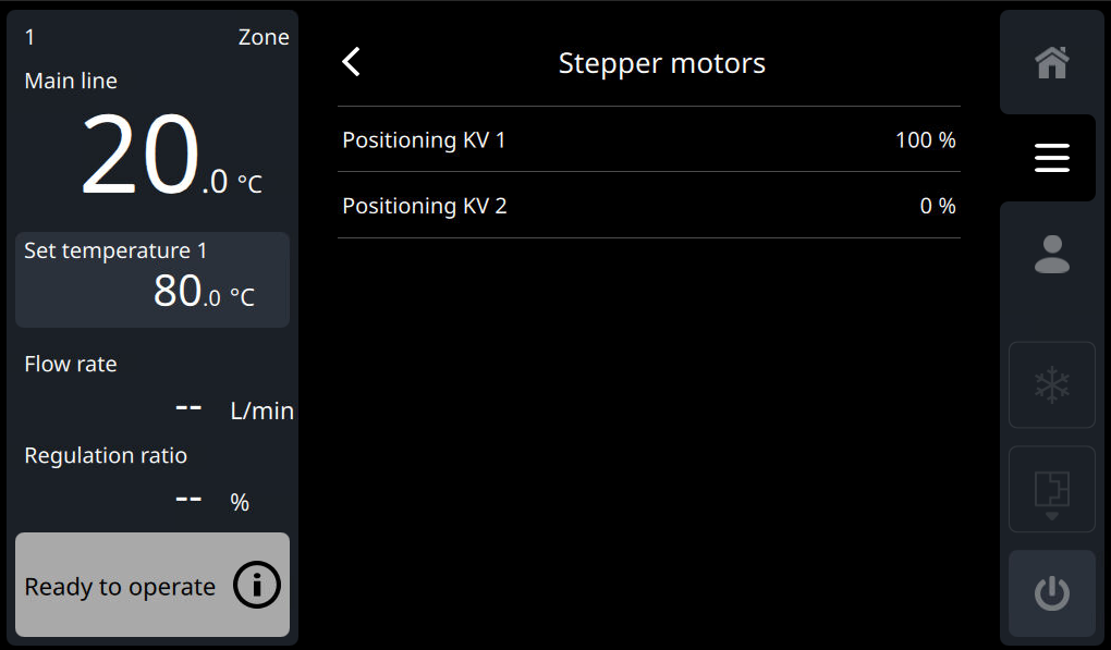 - Odaberite [Servis] > [Parametar] > [Hlađenje] > [Stepper Motors] > [Pozicioniranje KV 1].