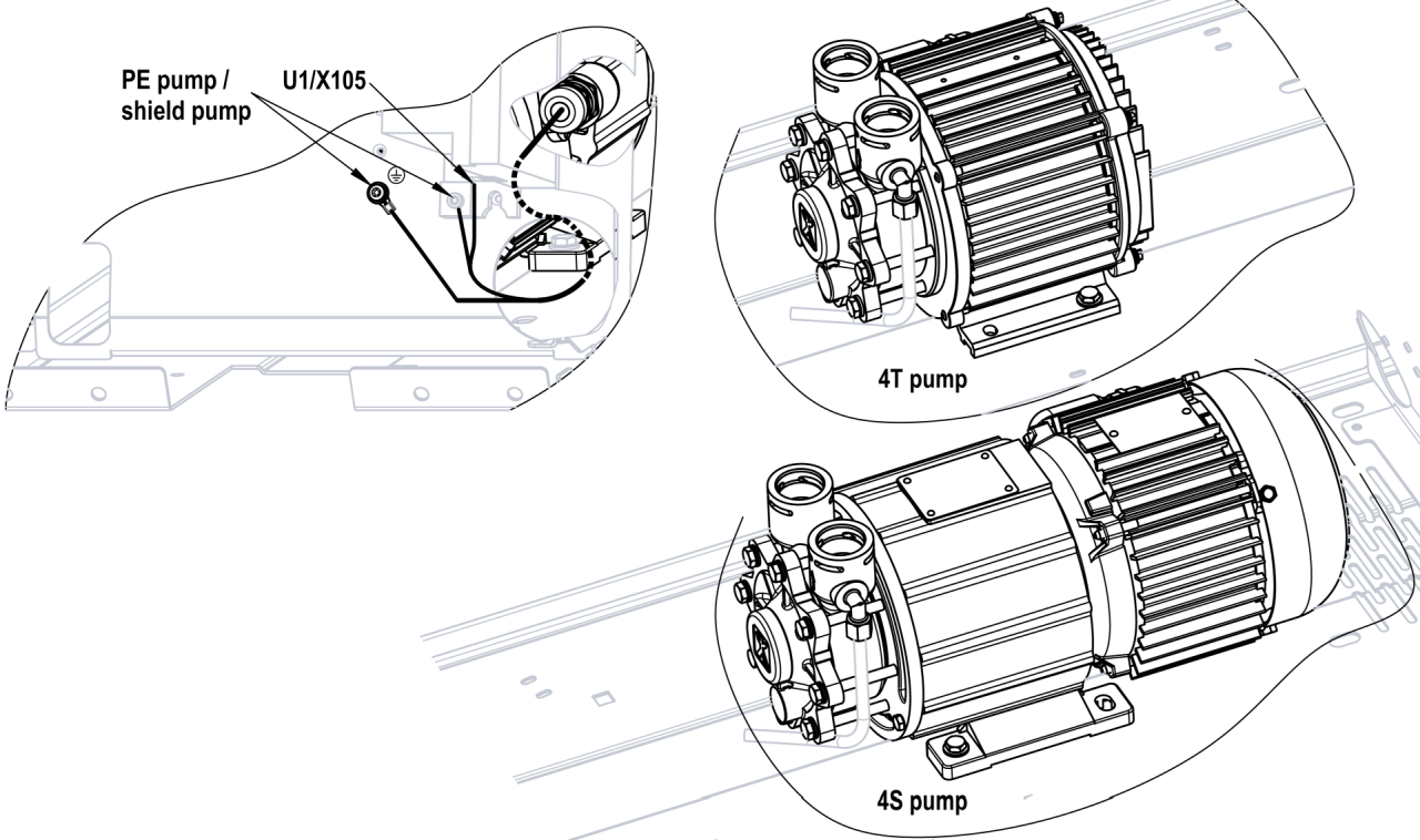 - Ponovno priključite vezu X105 na pretvaraču frekvencije (U_1) i pričvrstite žice za uzemljenje na električno Kućišta.