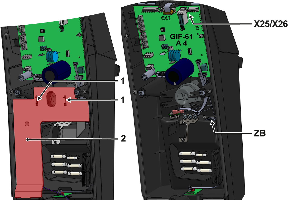 - Poprowadź kabel (X25/X26, T28732-1) do płyty urządzenia (GIF-61) i połącz.