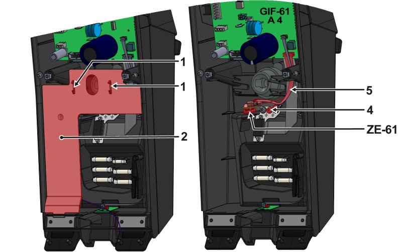 • Podłącz kabel taśmowy (⑤) do płyty ZE-61 i GIF-61 (A_4, gniazdo X23).