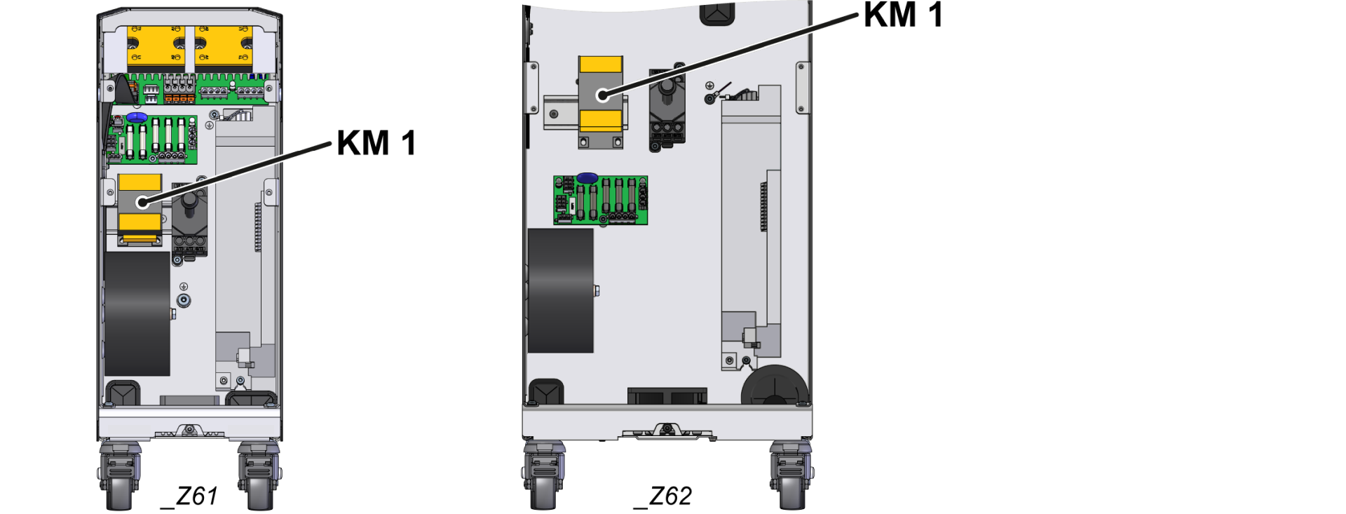 - Verificați dacă noul contactor (KM_1) este potrivit pentru utilizarea prevăzută (comparați specificațiile tehnice).