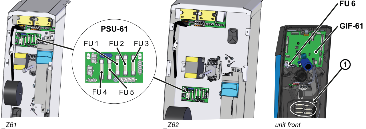 - Använd hjälpverktyget för att byta säkring på strömförsörjningskortet (PSU-61) och/eller aggregatskortet (GIF-61).
