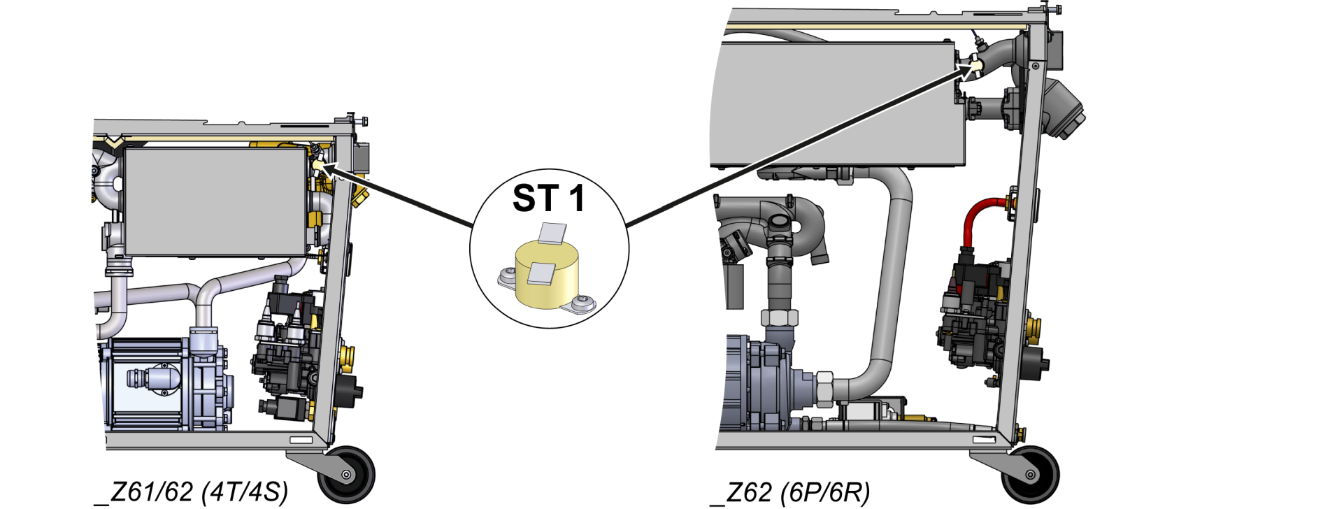 - Установите новый термостат (ST_1) и закрепите его крепежными винтами.