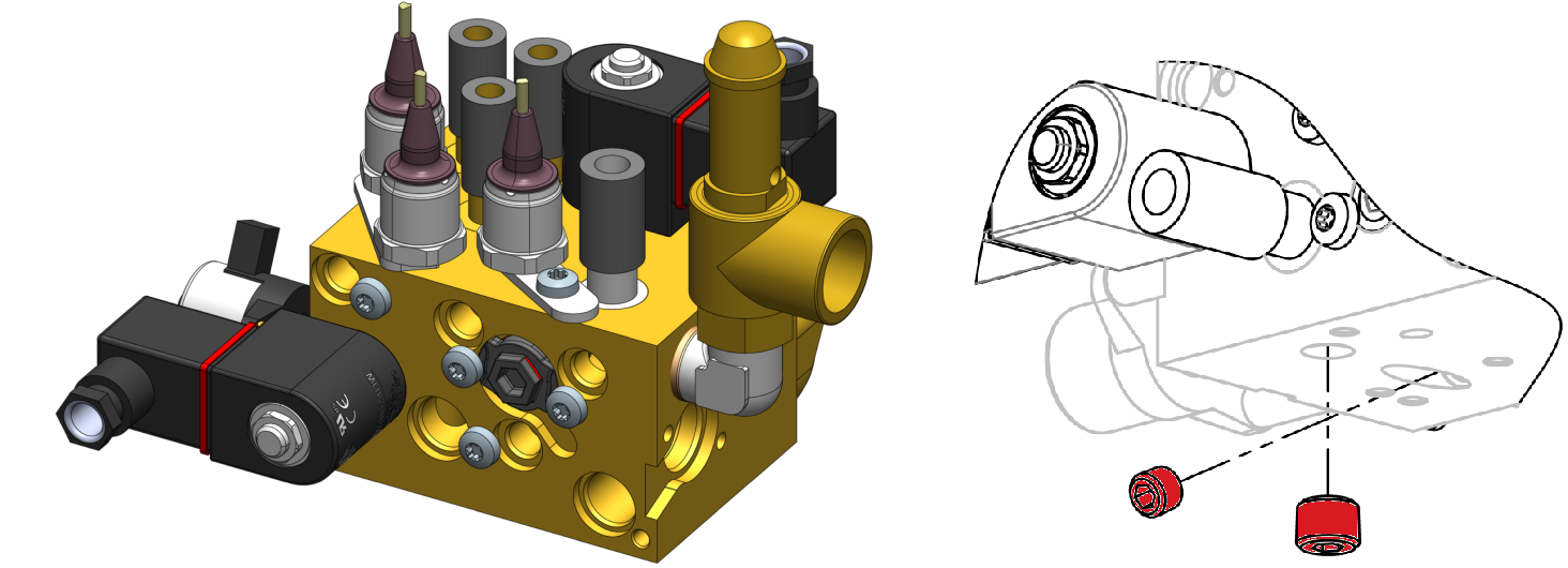- Nainštalujte mosadzný modul (ZNM , T29473) vrátane súvisiacich komponentov, ako je znázornené na spodnej strane modulu chladiaca voda (KWM-Z).