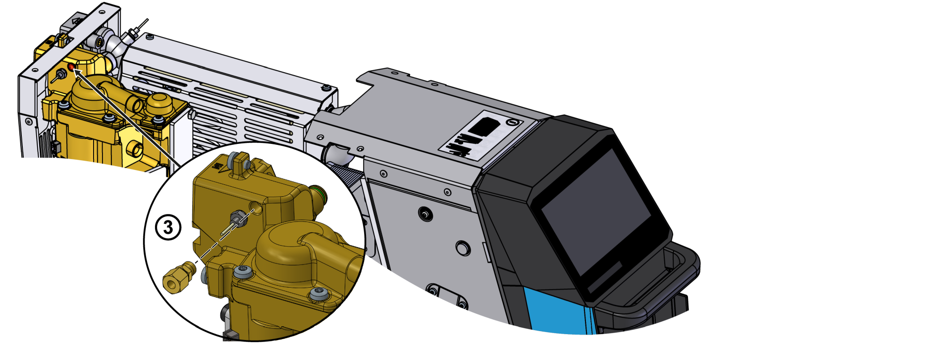 - Zamontować czujnik ciśnienia (BP_3) i wspornik i zabezpieczyć je śrubą mocującą.