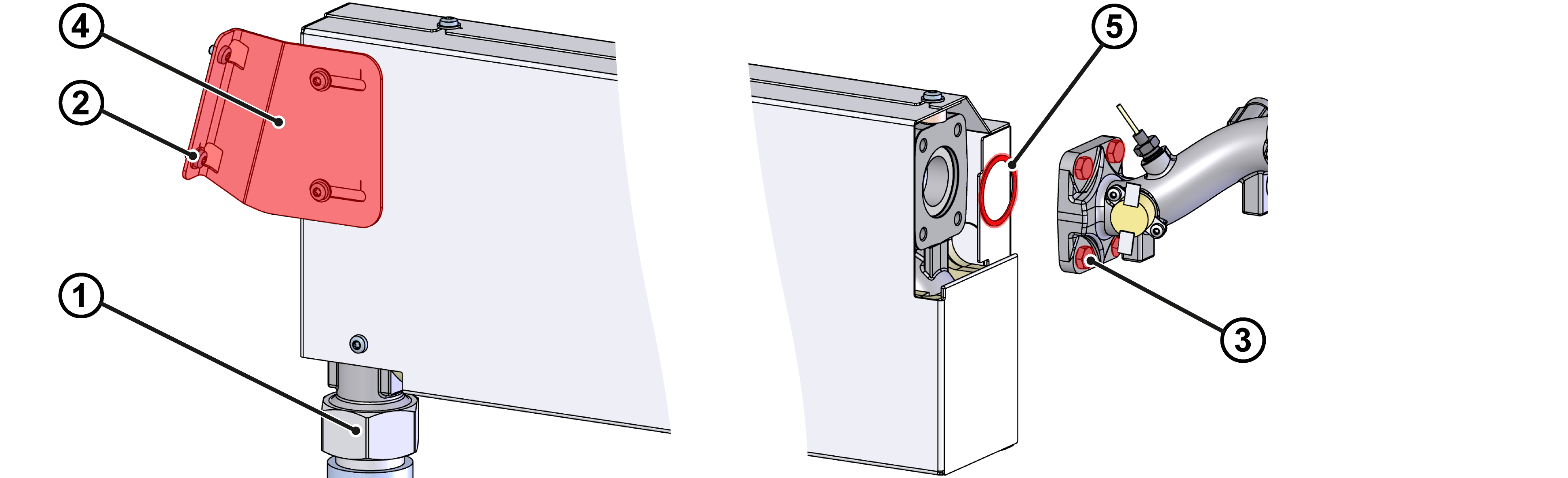 - Altıgen vidaları ③ bağlantı flanşına takın ve sıkın.