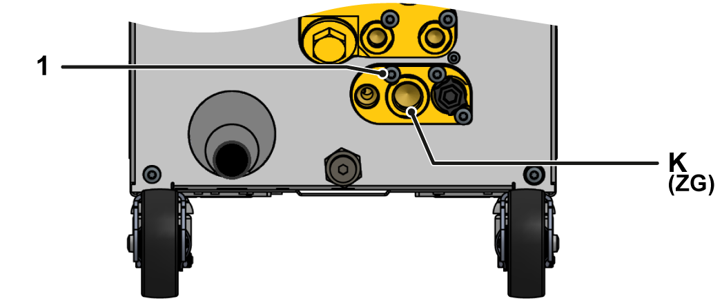 С Допълнително оборудване ZG външната верига се изпразва с помощта на сгъстен въздух. вода се издухва с помощта на свързан сгъстен въздух и безнапорен. В зависимост от настройката, сместа вода/въздух се подава в изхода за охлаждаща вода, изхода на системната вода или в изхода Сгъстен въздух изход. След това устройство се изключва.